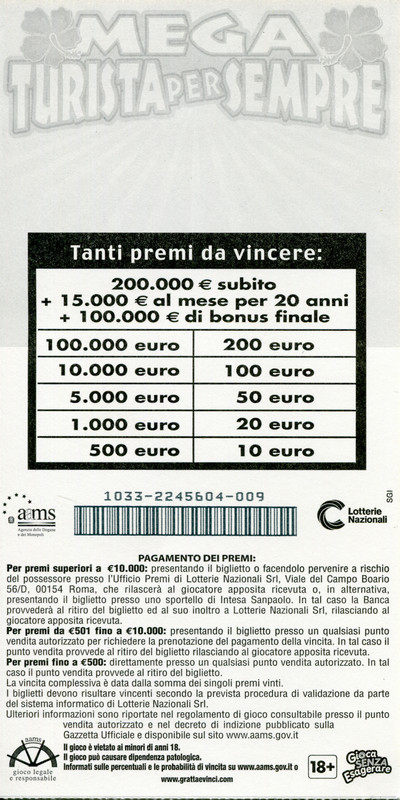 | 2012 | GRATTA E VINCI: MEGA TURISTA PER SEMPRE |