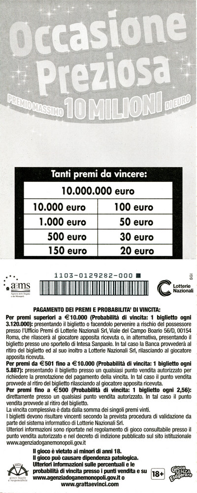 | 2016 | GRATTA E VINCI: OCCASIONE PREZIONSA |
