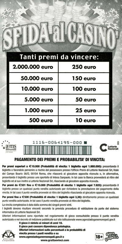 | 2017 | GRATTA E VINCI: SFIDA AL CASINO' |