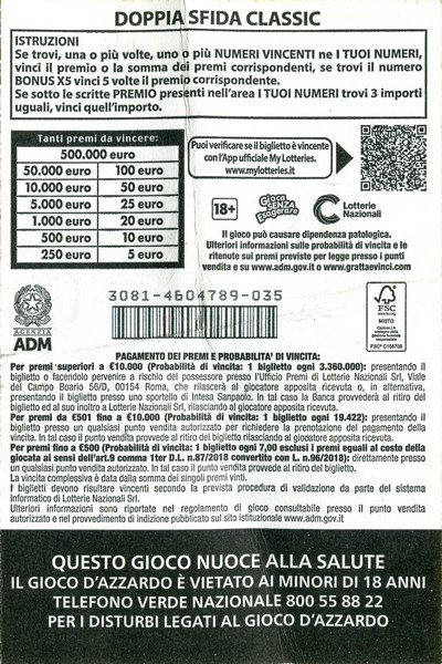 | 2024 | BIGLIETTI GRATTA E VINCI: DOPPIA SFIDA CLASSIC |