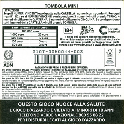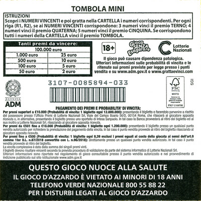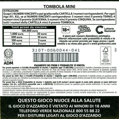 | 2024 | GRATTA E VINCI: TOMBOLA MINI |