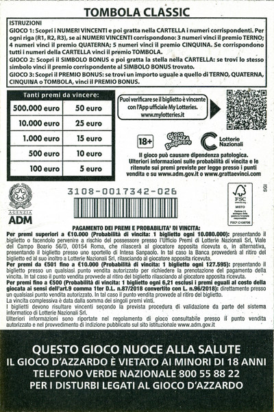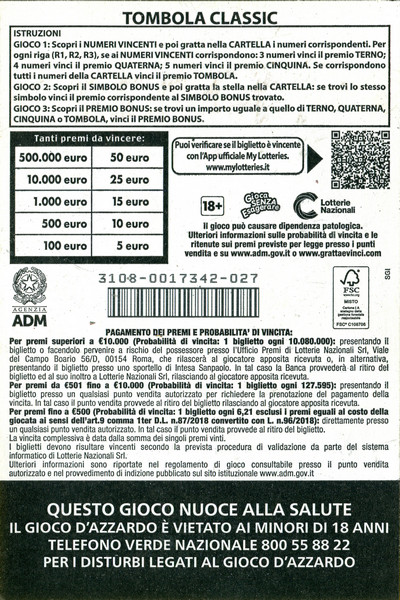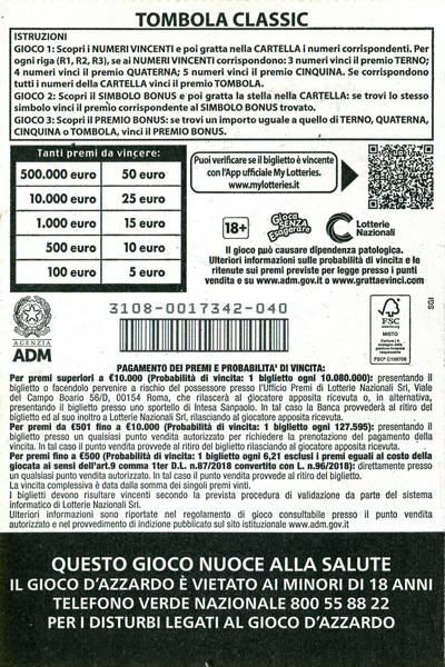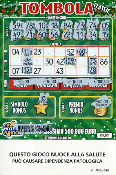 | 2024 | BIGLIETTI GRATTA E VINCI: TOMBOLA CLASSIC |