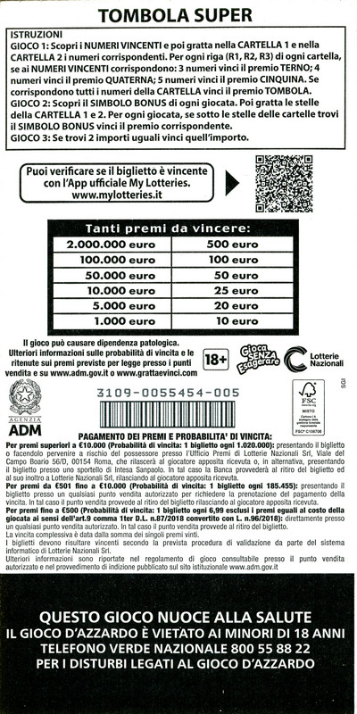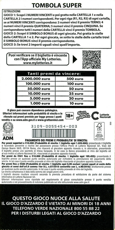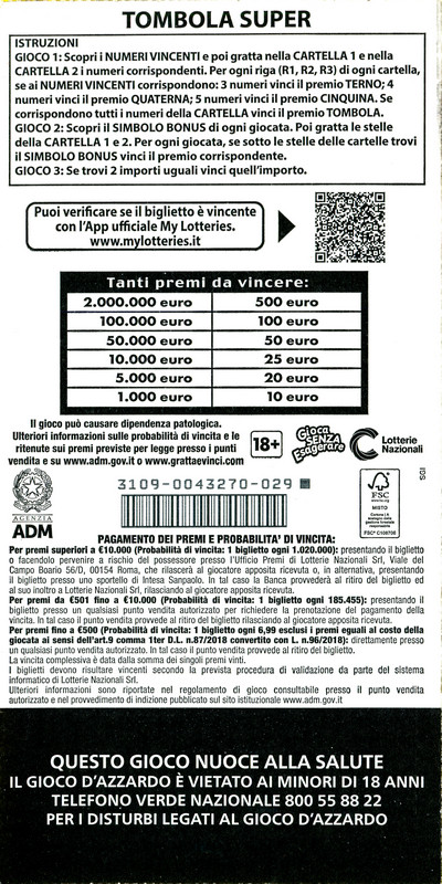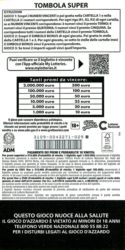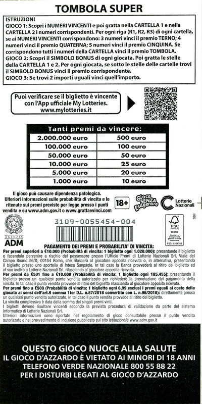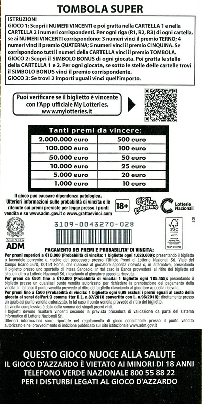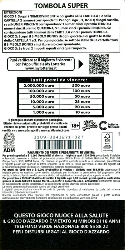 | 2024 | GRATTA E VINCI: TOMBOLA SUPER |