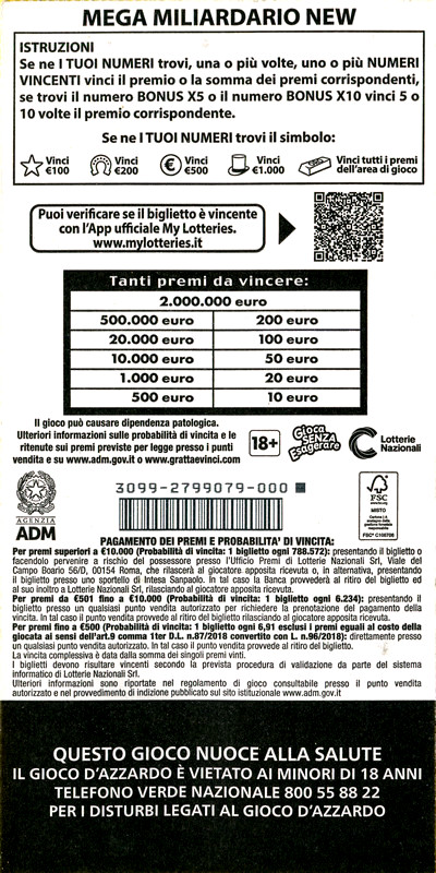 | 2025 | BIGLIETTI GRATTA E VINCI: MEGA MILIARDARIO NEW |