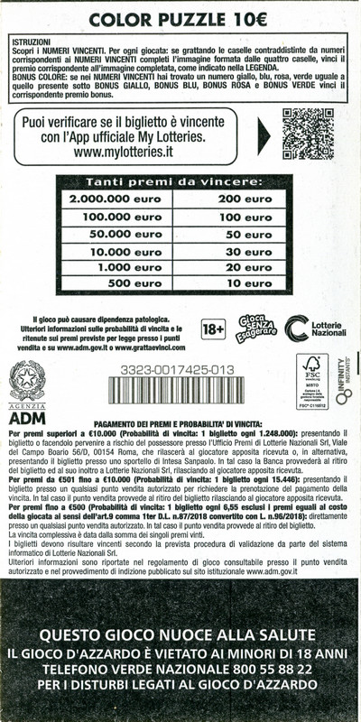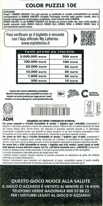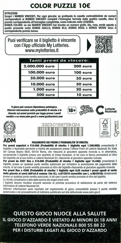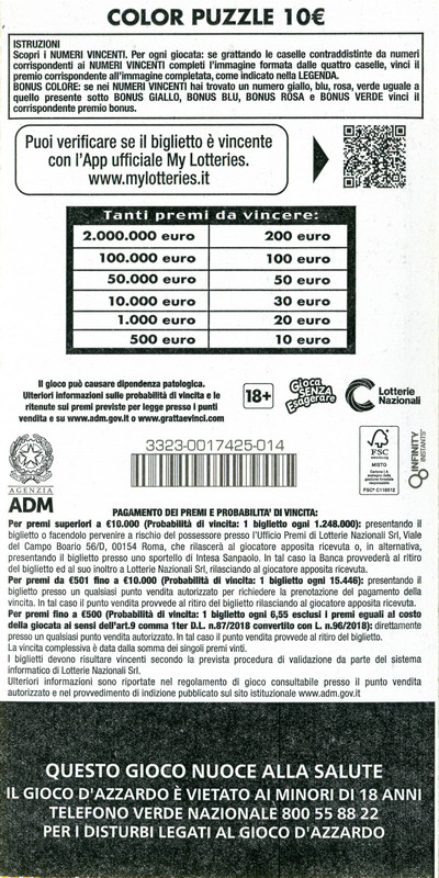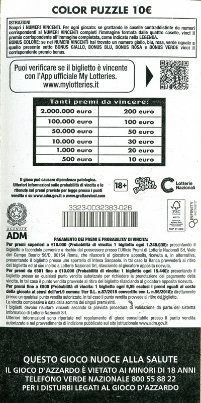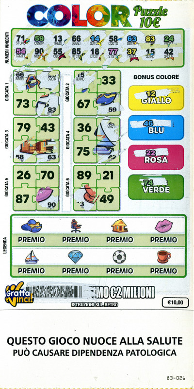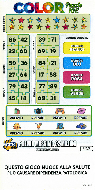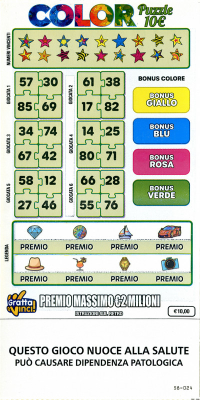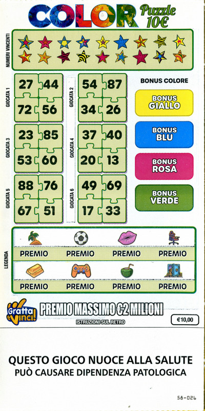 | 2026 | BIGLIETTI GRATTA E VINCI: COLOR PUZZLE 10€ |