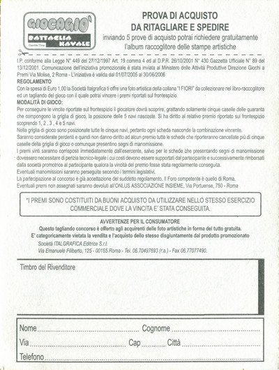 CONCORSI A PREMI: GIOCAGIO' BATTAGLIA NAVALE |