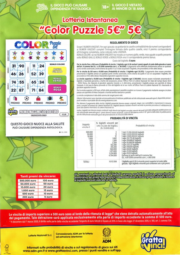 | 2026 | LOCANDINE GRATTA E VINCI: COLOR PUZZLE 5€ |